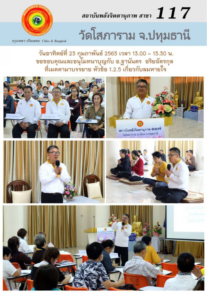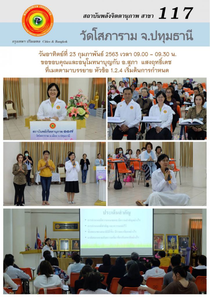 สถาบันพลังจิตตานุภาพ สาขา 117 วัดโสภาราม ปทุมธานี