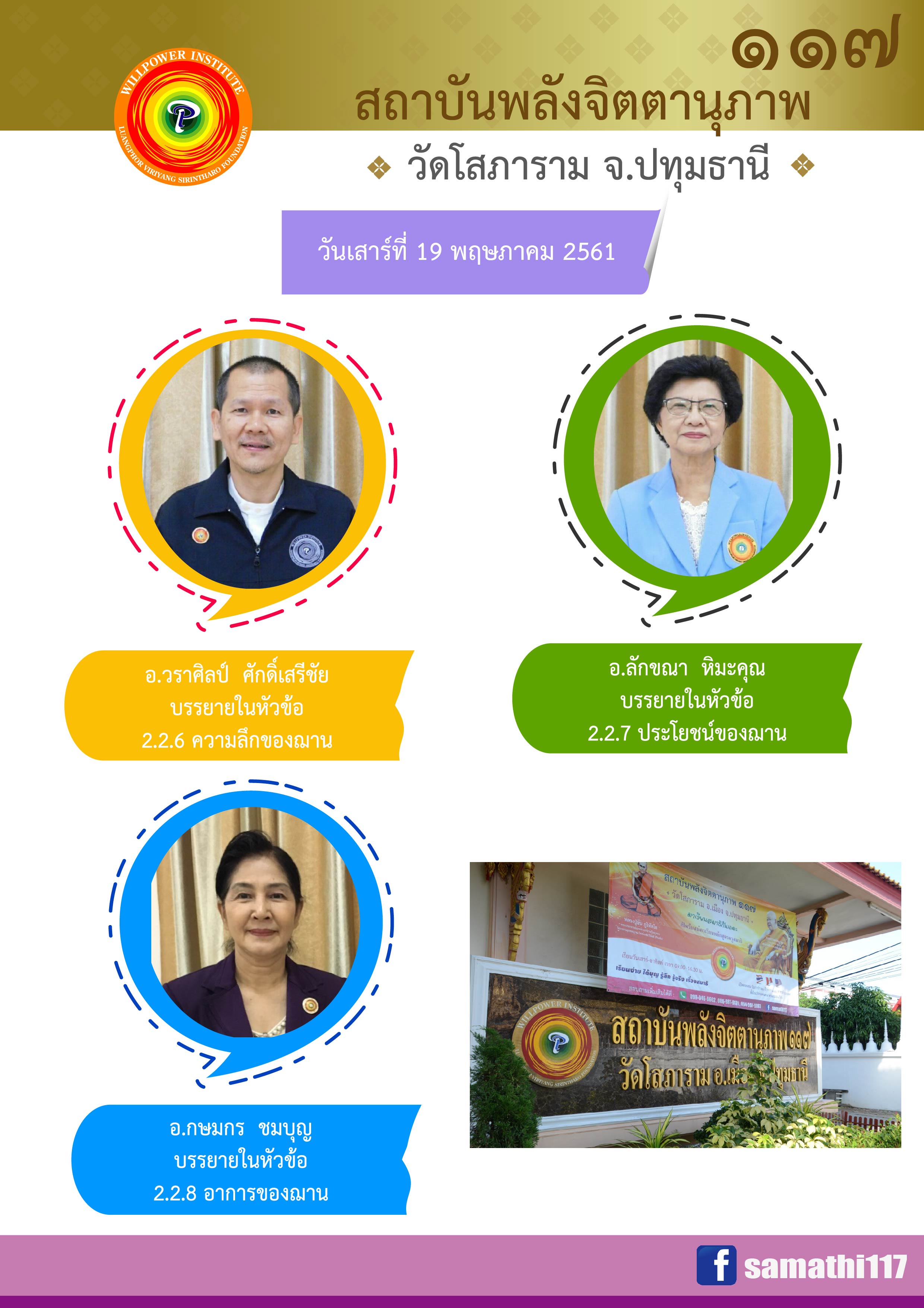 บรรยากาศการเรียนการสอน หลักสูตรครูสมาธิ สาขา 117 วัดโสภาราม วันเสาร์ที่ 19 พ.ค. 61