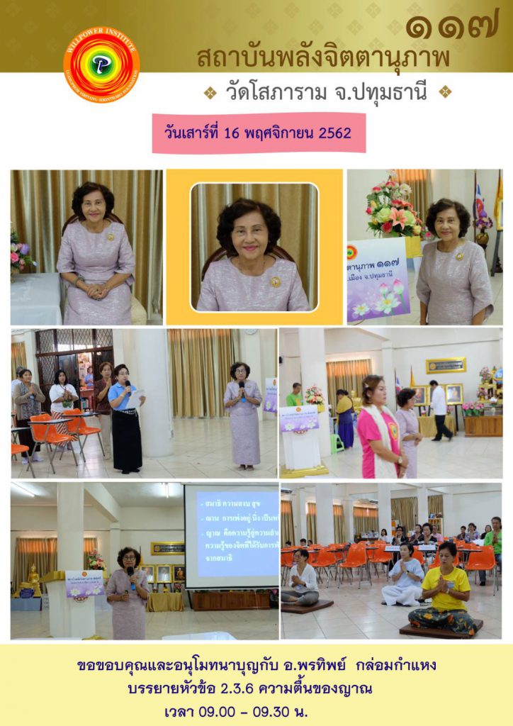 สถาบันพลังจิตตานุภาพ สาขา 117 วัดโสภาราม ปทุมธานี