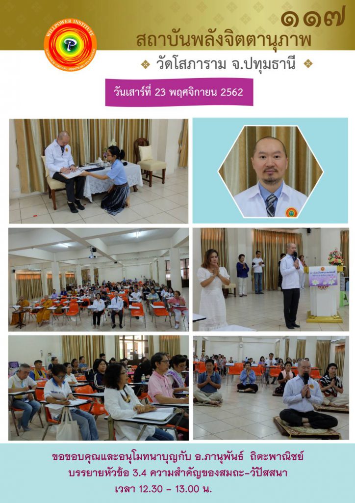 สถาบันพลังจิตตานุภาพ สาขา 117 วัดโสภาราม ปทุมธานี