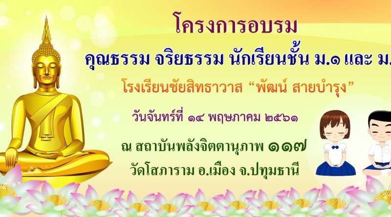 ชินนสาสมาธิ Webmaster 09/05/2018 0 Comments ชินนสาสมาธิ จัดอบรมคุณธรรม จริยธรรมให้กับนักเรียนชั้น ม.1 และม.4 โรงเรียนชัยสิทธาวาส “พัฒน์ สายบำรุง” ? สถาบันพลังจิตตานุภาพ สาขา 117 วัดโสภาราม จ.ปทุมธานี จัดโครงการอบรมคุณธรรม จริยธรรม ให้กับนักเรียนชั้น ม.1 และ ม.4 จากโรงเรียนชัยสิทธาวาส “พัฒน์ สายบำรุง” ? Read More